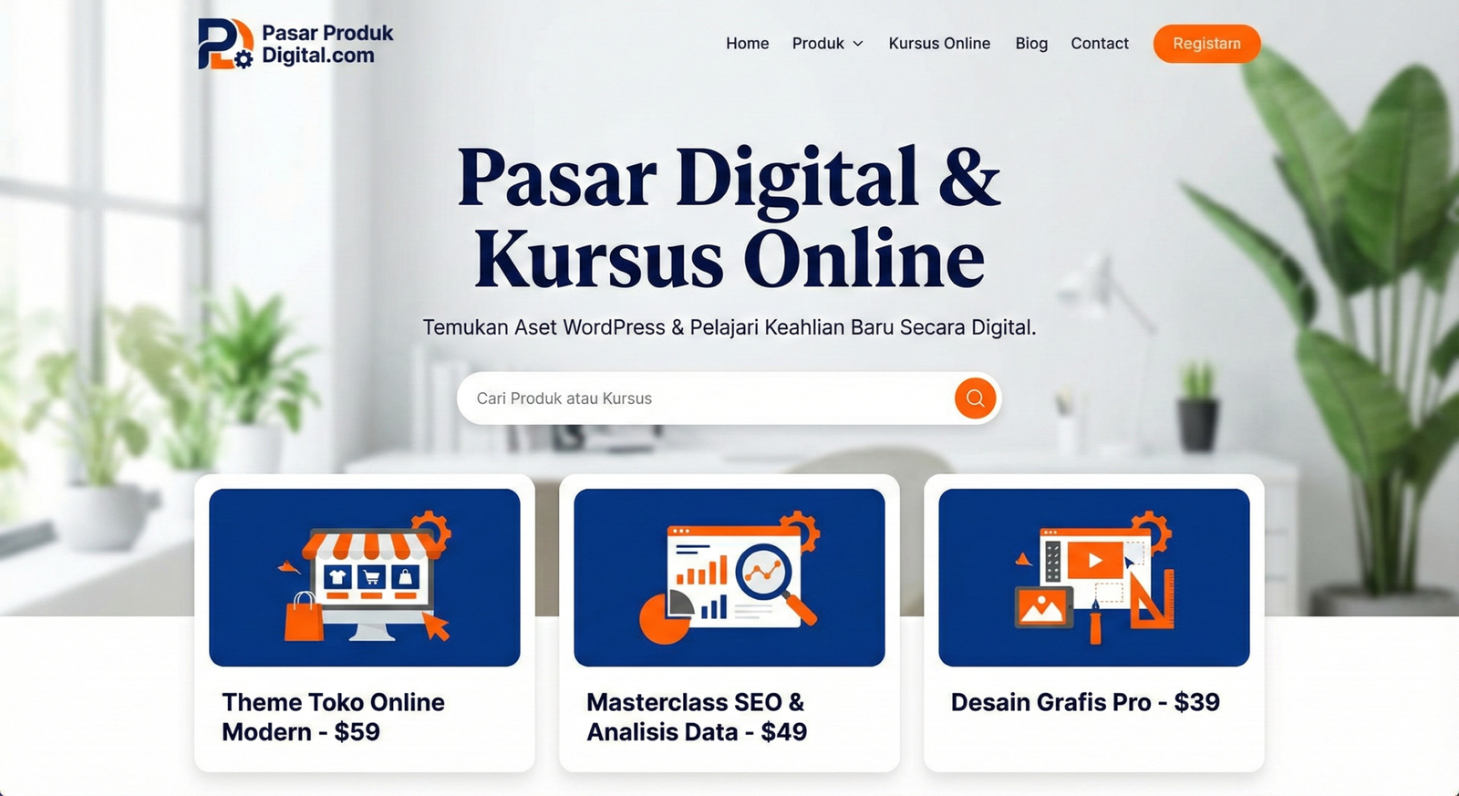 Jual theme wordpress jual theme WordPress pasar Produk digital merupakan marketplace penjualan produk produk digital…